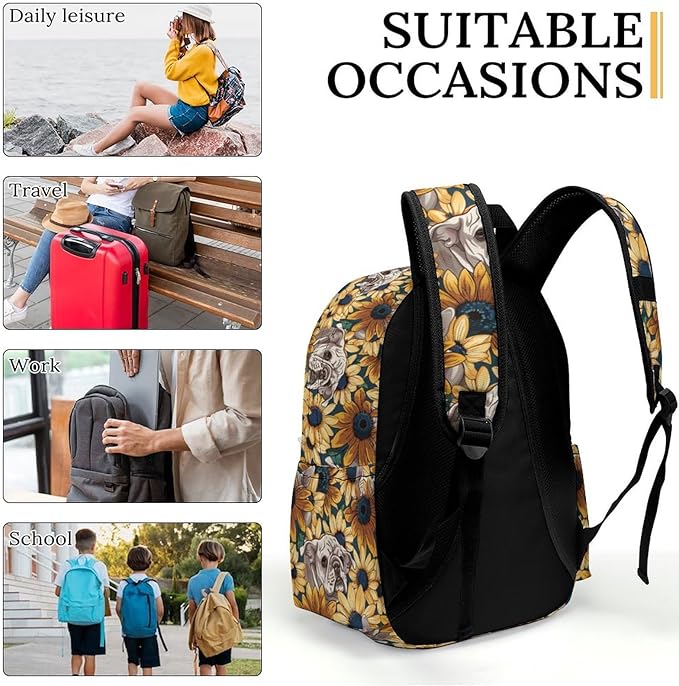- ♥[Joyidec Cute Backpack] -- This kawaii Cartoon French Bulldog Face Sunflower printed kids backpack for girls and boys is perfect for all ages, the fun cute and handsome pattern always attracts attention and work backpack for women can be a great wearable matching piece