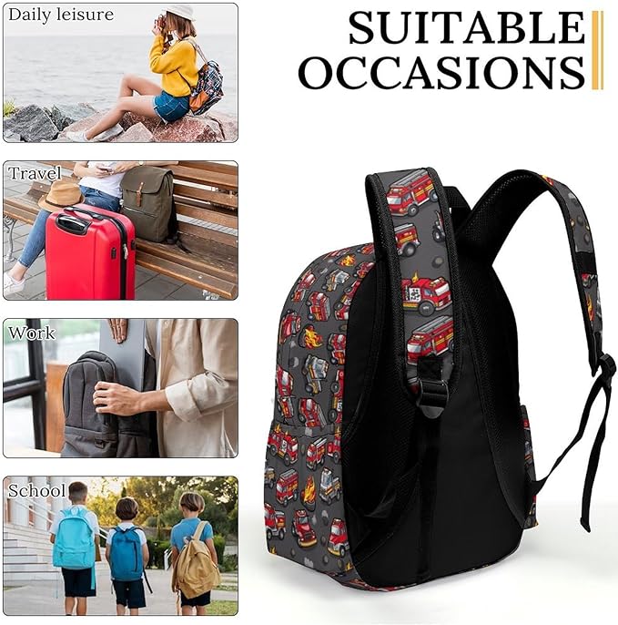 17 Inch Laptop Backpack Cartoon Fire Fighting Trucks Teen Girls Boys School Backpack Bags Travel Bookbag Back Pack Outdoor Daypack for Women Men