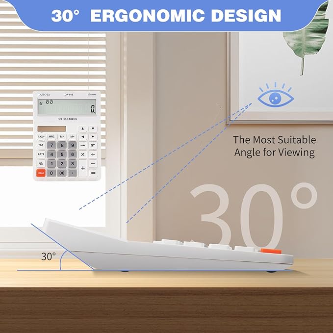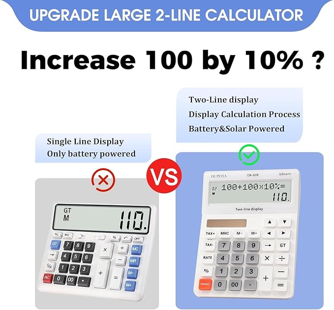 Desktop Calculator Large Display Big Buttons with 12 Digits 2-line LCD, Dual Solar Power and Battery, Calculator with Tax and Check Function for Office, Home, School and Business Large Size(OA-608)