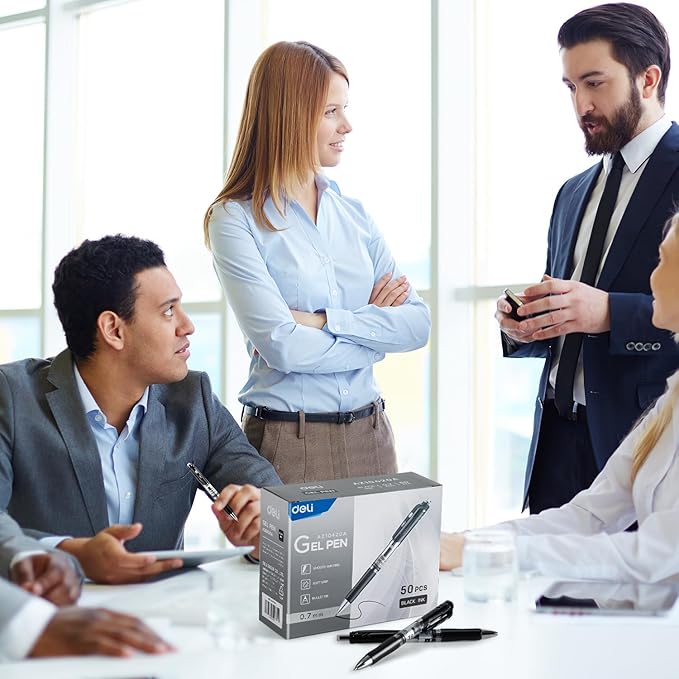 deli Gel Pens, 50 Pcs Retractable Pens Black Ink, Medium Point Pen 0.7mm, Smooth Writing, Fast Dry, No Bleed for Journaling Note Taking, Home School Office Supplies