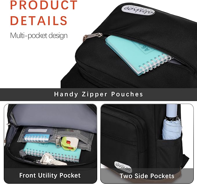 abshoo Classic Backpack for School College Bookbag Middle High School Bakcpacks for Teen Casual Daypack (Black)