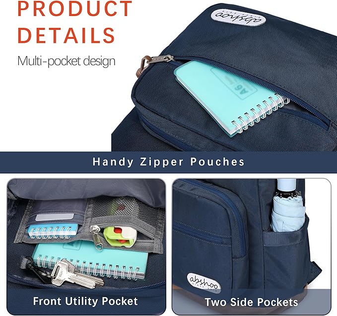 abshoo Classic Mens Backpack for School College Bookbag Middle High School Boys Bakcpacks for Teen Casual Daypack (Navy)