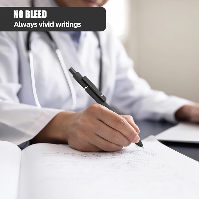 - [Pen Body] The ergonomic design offers a comfortable grip, allowing for long writing sessions without any discomfort. The retractable mechanism functions smoothly, ensuring convenience and ease of use. A little metal ball on the silicone grip also functions as a fidget toy.
