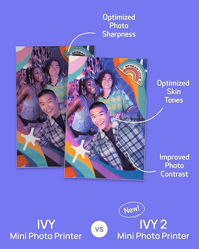 - PRINT QUALITY IMPROVED in the IVY 2 Mini Photo Printer(optimized skin tone colors, improved photo contrast, optimized photo sharpness)