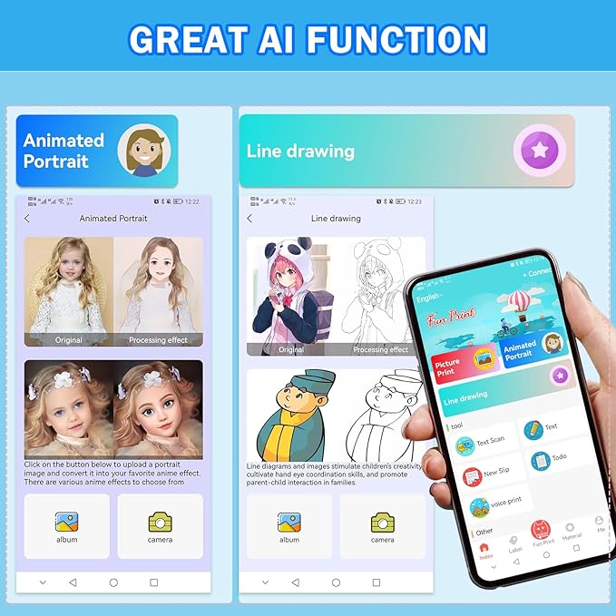 - Versatile Printing Options --- The mini printer for iPhone offers versatile printing options, allowing you to customize and print a wide range of stickers, journal entries, memos and photos. Multifunctional Print App “funprint’ has many templates, such as Easter, Halloween, Christmas and other templates, very versatile to meet your diverse needs.