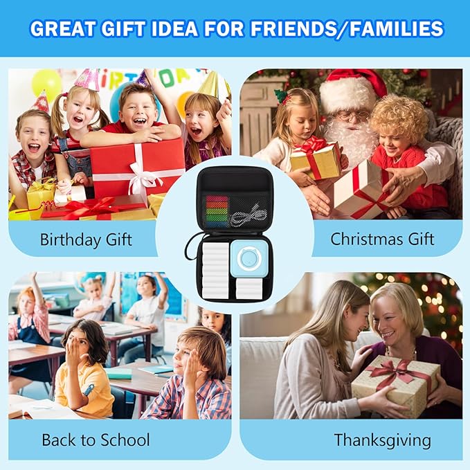 - Mini Sticker Printer Set --- This mini bluetooth printer set comes with a mini pocket printer, a carrying case and 10 rolls of thermal paper, which is a great set to meet your printing needs, making it ideal for students, teachers and travelling, such as journaling, study notes, creating memos, shopping lists and printing photos on the go. Please note: charge your printer 2-3 Hours if printing is not clear as before.