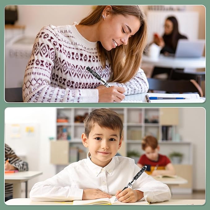 - [Comfortable Writing] A 0.5 mm medium point achieves precise and smooth writing. The non-slip groove texture can effectively prevent slipping, making it comfortable to hold, and you won't feel tired when writing for a long time. Pen clip allows you to hang it on a notebook, pocket, etc.