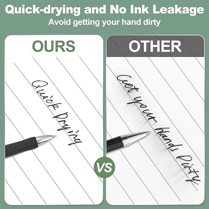 - [Smooth Writing and Quick Drying] Excellent-quality ink achieves even ink flow with no ink leakage or interruption, allowing you to write smoothly. The large ink capacity ensures the long service life of the pen. Quick-drying ink prevents you from getting your hands and clothes dirty.
