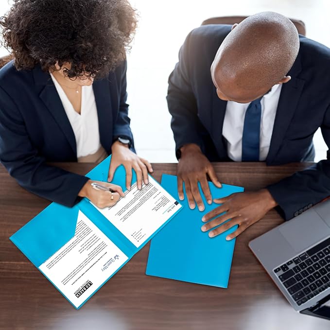 - Heavy duty plastic folders with size 9.4" x 11.6", fit us letter size paper.