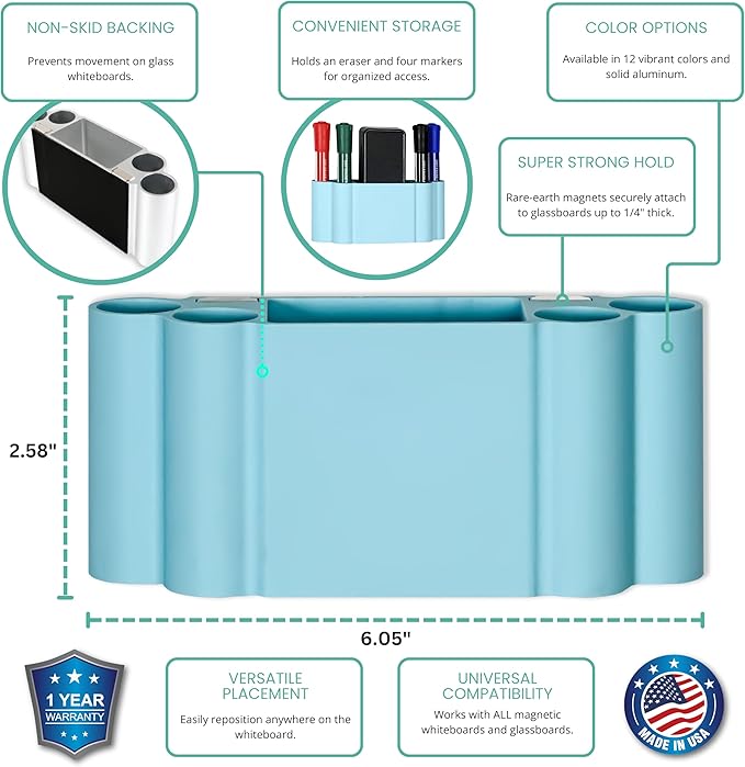 - Ultimate Stability: Our magnetic dry-erase marker holder uses two large neodymium magnets and a rubber grip pad, eliminating slipping entirely and ensuring your markers stay firmly in place, even on magnetic glass whiteboards.