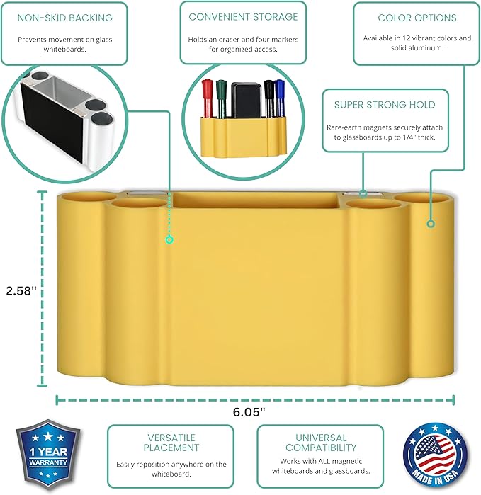 - Ultimate Stability: Our magnetic dry-erase marker holder uses two large neodymium magnets and a rubber grip pad, eliminating slipping entirely and ensuring your markers stay firmly in place, even on magnetic glass whiteboards.