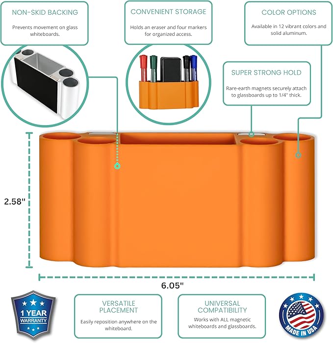 - Ultimate Stability: Our magnetic dry-erase marker holder uses two large neodymium magnets and a rubber grip pad, eliminating slipping entirely and ensuring your markers stay firmly in place, even on magnetic glass whiteboards.