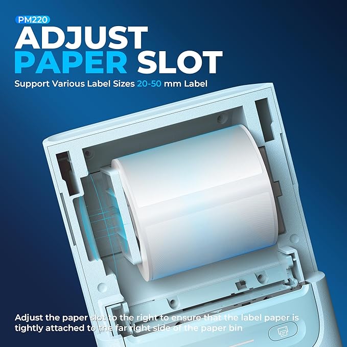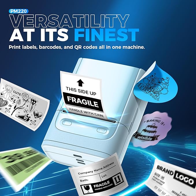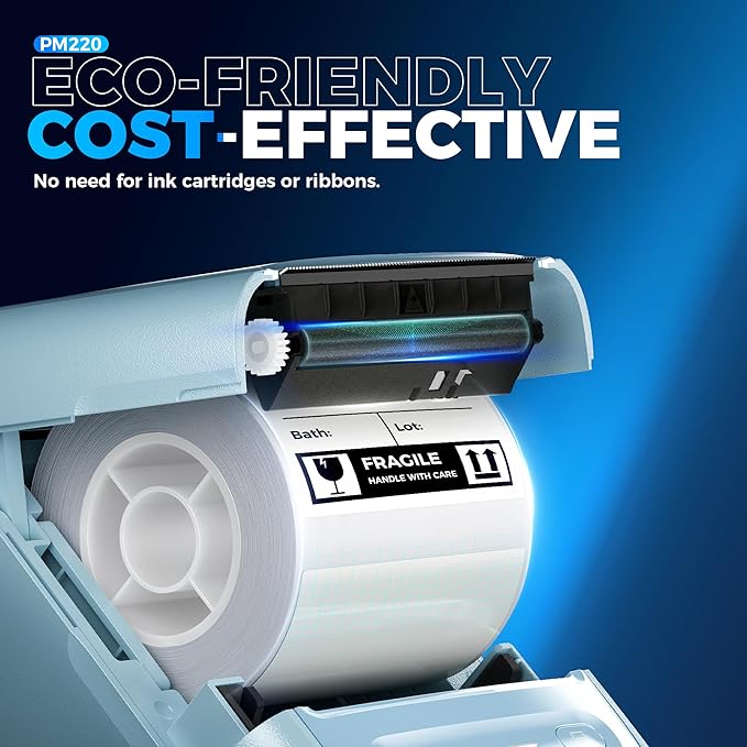 - Powerful APP- The PM220 label maker machine with tape comes with label templates and can set up your own templates. Please do not tear or destruct the green sticker on the back of the label strip, otherwise it will affect the printing effect. This label printer allows you to customize and format labels, supporting various features such as QR codes, barcode labels, tables, materials, time, figures, text, icons. This label maker machine with tape APP included more than 90 +Fonts, 14+ Languages, 450+ Materials
