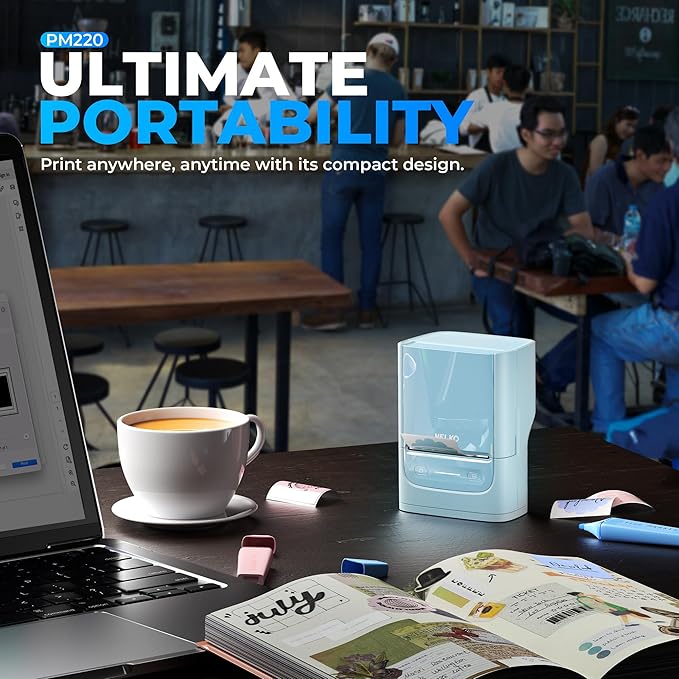 - Portable- PM220 label maker machine with tape compatible with smartphone & PC. Easily connect label printer to your smartphone in just 5 seconds for fast and convenient printing, label printer achieves convenient, smooth & fasts printing. Mini compact design, you can bring this portable label maker machine with tape to anywhere.(Note: charging adapter not included, not suitable for fast charging adapter.)