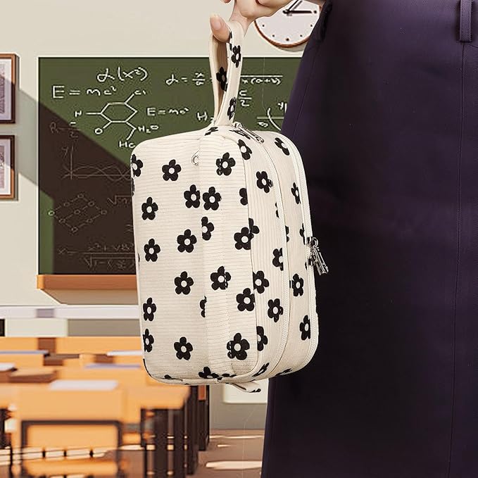 Bluboon Big Capacity Pencil Case Pencil Pouch School Supplies Cute Pencil Box Pencil Bag for Teen Girls Boys Women Man (Black Floral 95)
