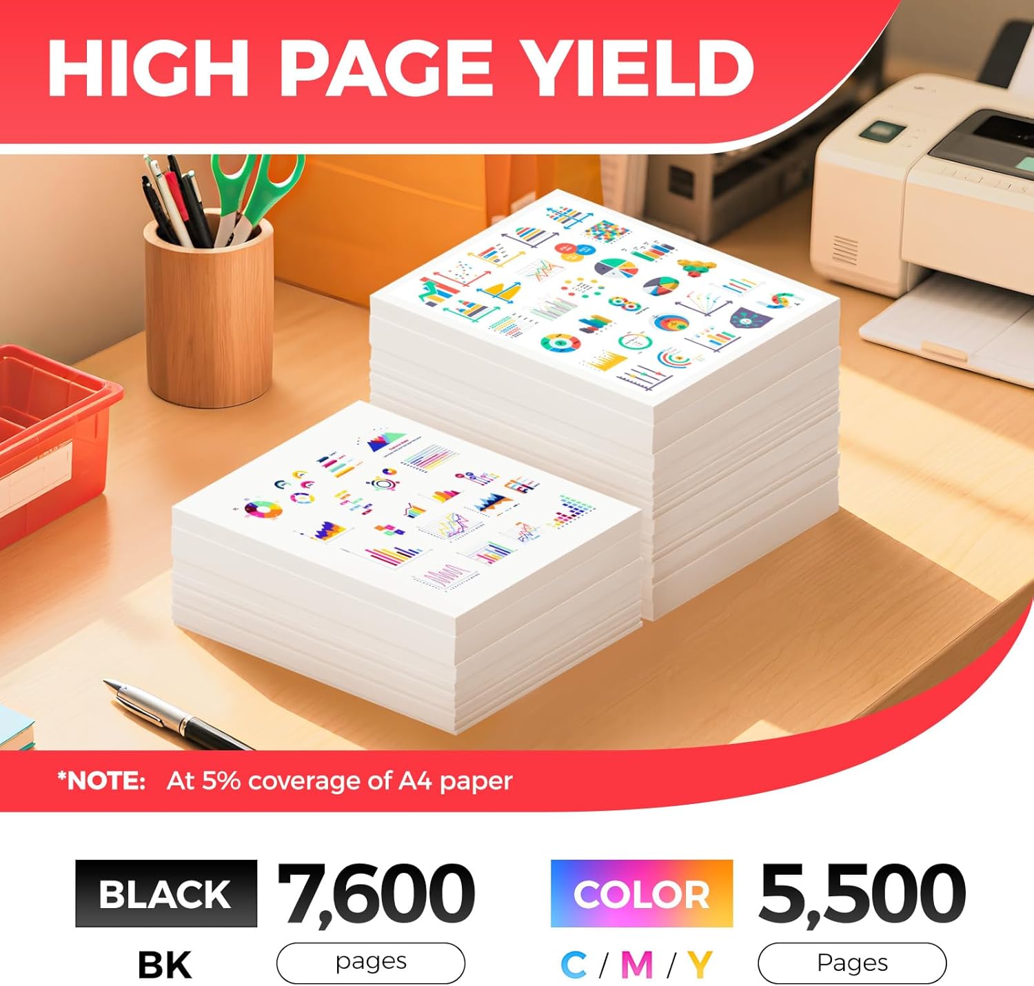 - High-Yield: up to 7,600 pages per 069H Black and 5,500 pages per 069H Color (Total 24,100 pages, 5% coverage)