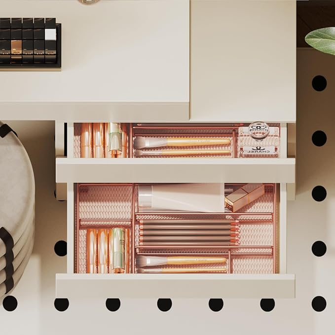 Desk Drawer Organizer Tray, Mesh Desk Organizer, Office Drawer Organizer, Desk Accessories & Workspace Organizers, Suitable for Tools, Pencils, Office Supplies Storage (Rose Gold)