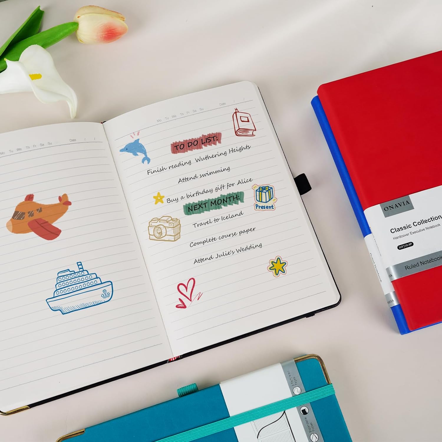 - Hardcover Journal Notebook: ONAVIA a5 journaling notebooks feature a durable and water-resistant faux leather cover, and 80 sheets/160 pages high-density hard thick paper. The exquisite golden corner design not only protects the edges of the lined note books from damage caused by external impacts but also enhances its aesthetic appeal and lends an air of sophistication