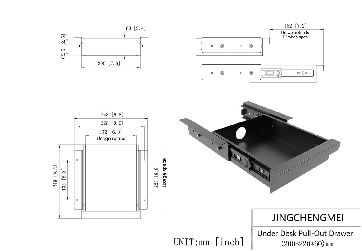 - Convenient Under-Desk Storage: Exterior dimensions after assembled-Width 7.9" (W 9.8" including side brackets ) x Depth 9.8" (including the handle) x Height 2.5". Inside Usage Space: W 6.8" x D 8.8" x H 2.4" . This sliding pull-out drawer mounts under your desk (at least 0.75” thick) , providing easy access to stored items while keeping your workspace clutter-free.