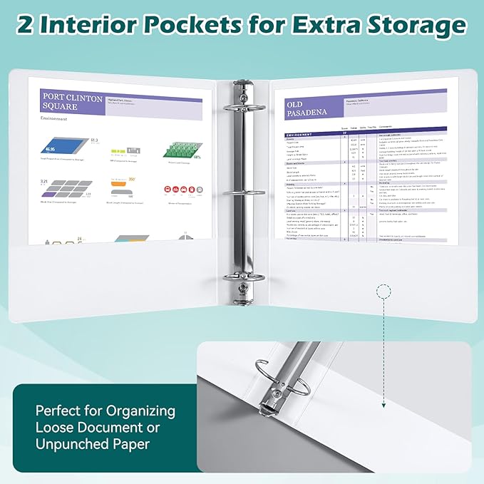 - Large Storage Capacity: The 2 in round ring binder holds up to 450 sheets of 8-1/2-by-11-inch paper or 3-hole folders.The two pockets inside the three ring binder work well for storing unpunched documents,handouts, small papers and other loose.