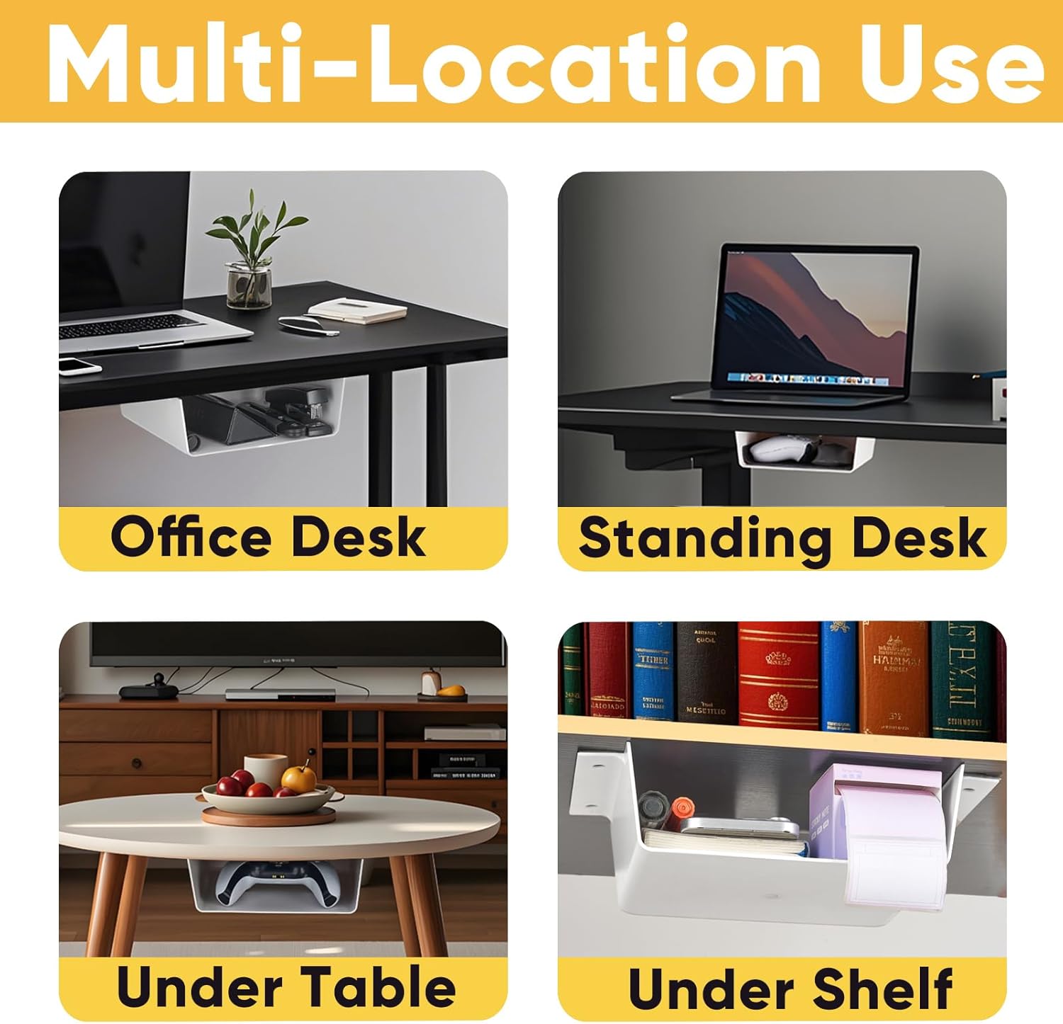 - 【SPACE OPTIMIZATION】 Maximize your workspace by adding additional storage with this under desk tray. It's designed to be mounted under table or desk, giving you extra space for keeping essentials neatly organized