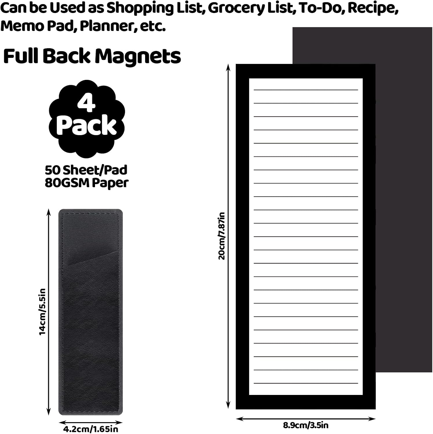 - 【200 Sheets Magnetic Notepad 】You will receive 4 pack magnetic note pad, each pad has 50 sheets, totally 200 sheets, measures 20x8.9cm/7.87x3.5inch, enough quantity and space for your daily use, the pen is not include