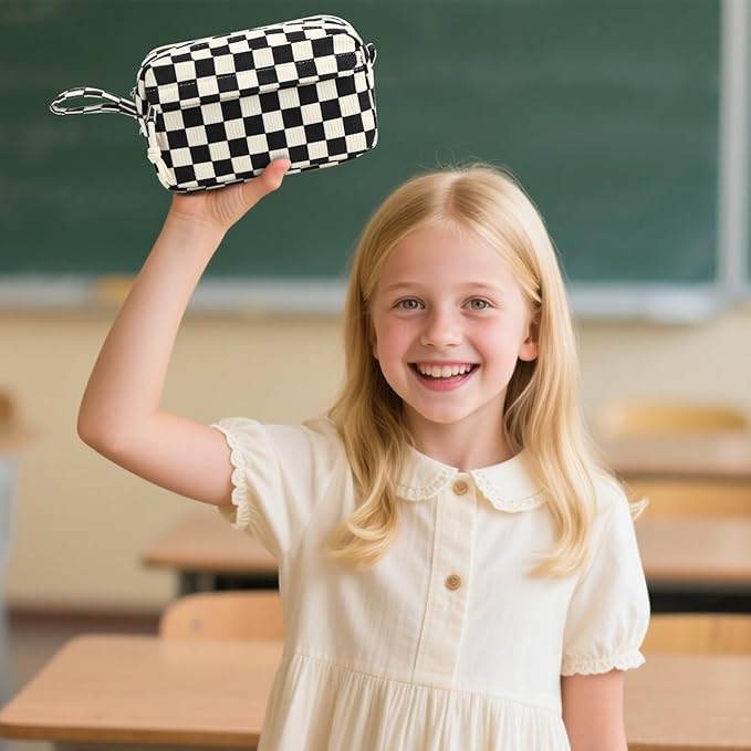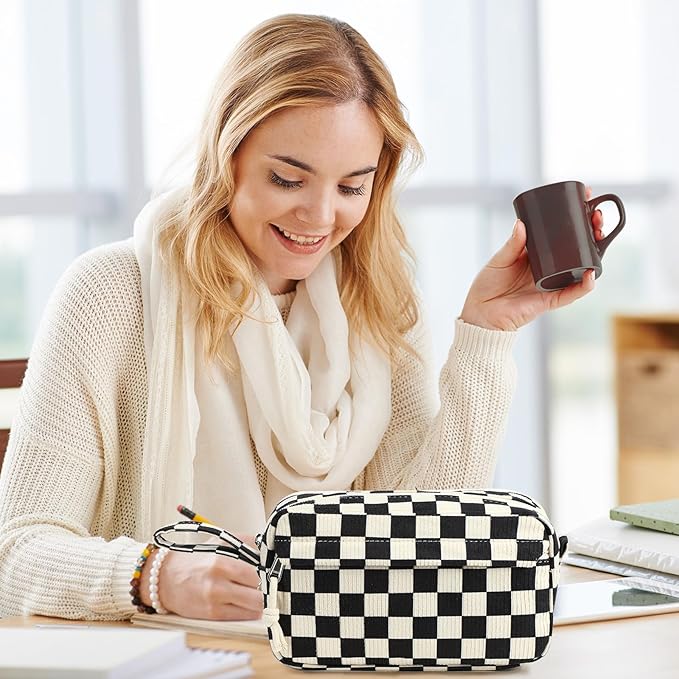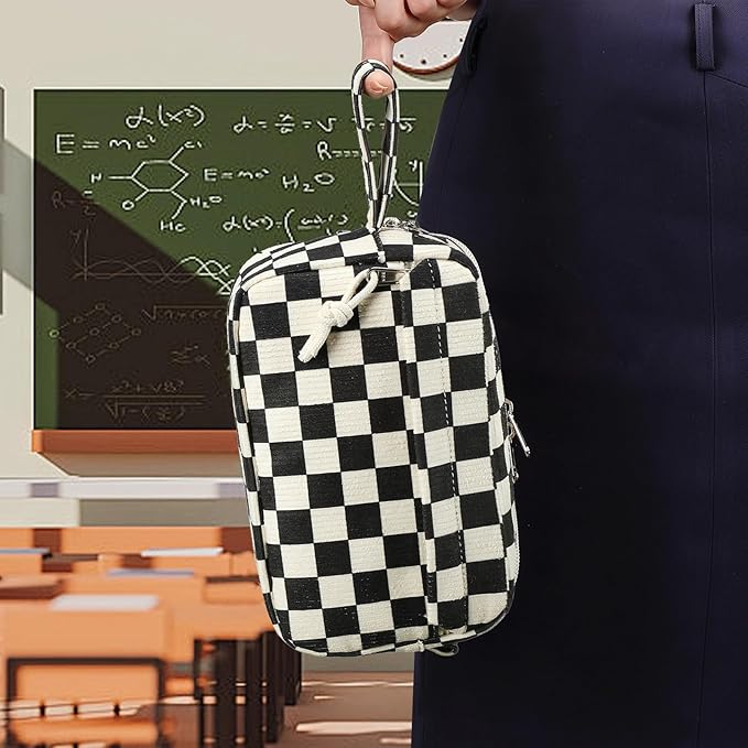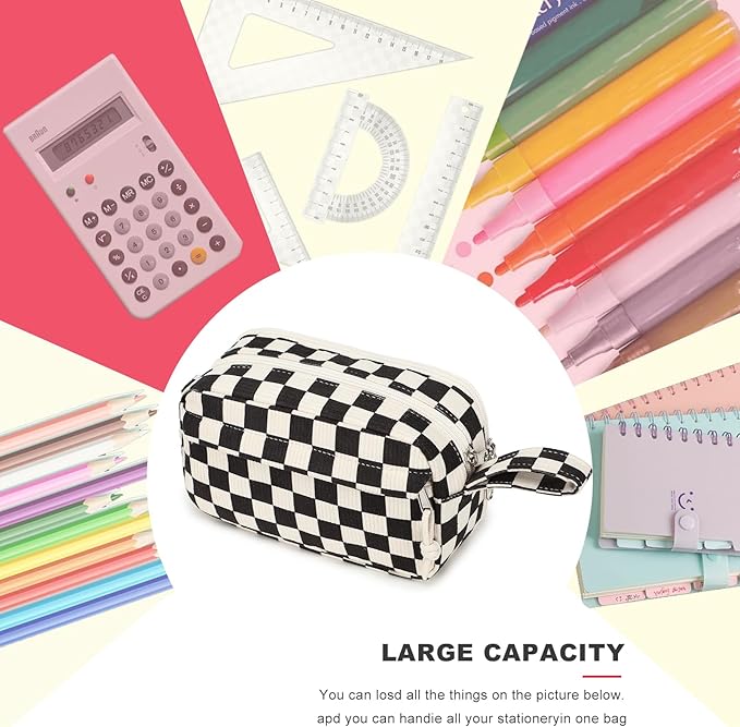 Bluboon Big Capacity Pencil Case Pouch Pen Case School Supplies - Cute Pencil Box Bag for Teen Girls Boys Women Man (Black White Checked)