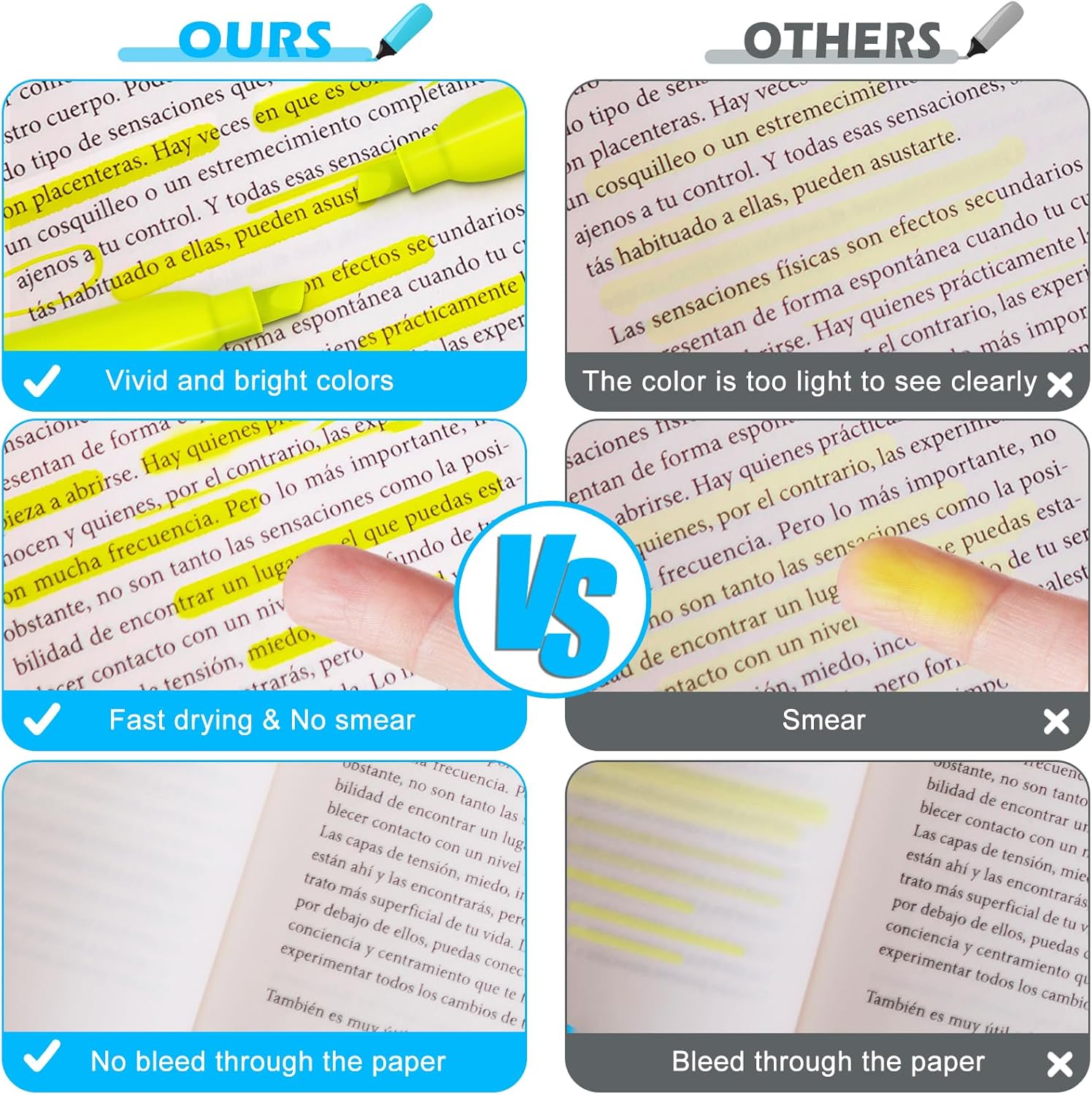 - Non Bleed & Quick-Drying Highlighter - Highlighter pens use quick-drying ink, making highlighted marks clearly visible without worrying about the ink staining your hands and your book. Even if you highlight on one side of the page, the other side is still completely readable, and there's no need to worry about ink bleeding through and affecting the readability of the page.