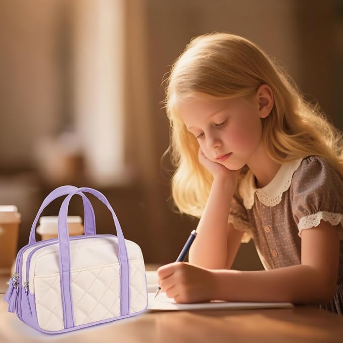 - 【Unique Appearance Design】Large-capacity pencil case features a handbag-style design for easy storage and organization. Its sturdy and comfortable handle enhances portability.stylish quilted check pattern adds visual appeal. The soft fabric provides a pleasant touch, while the dual zipper is both durable and smooth.