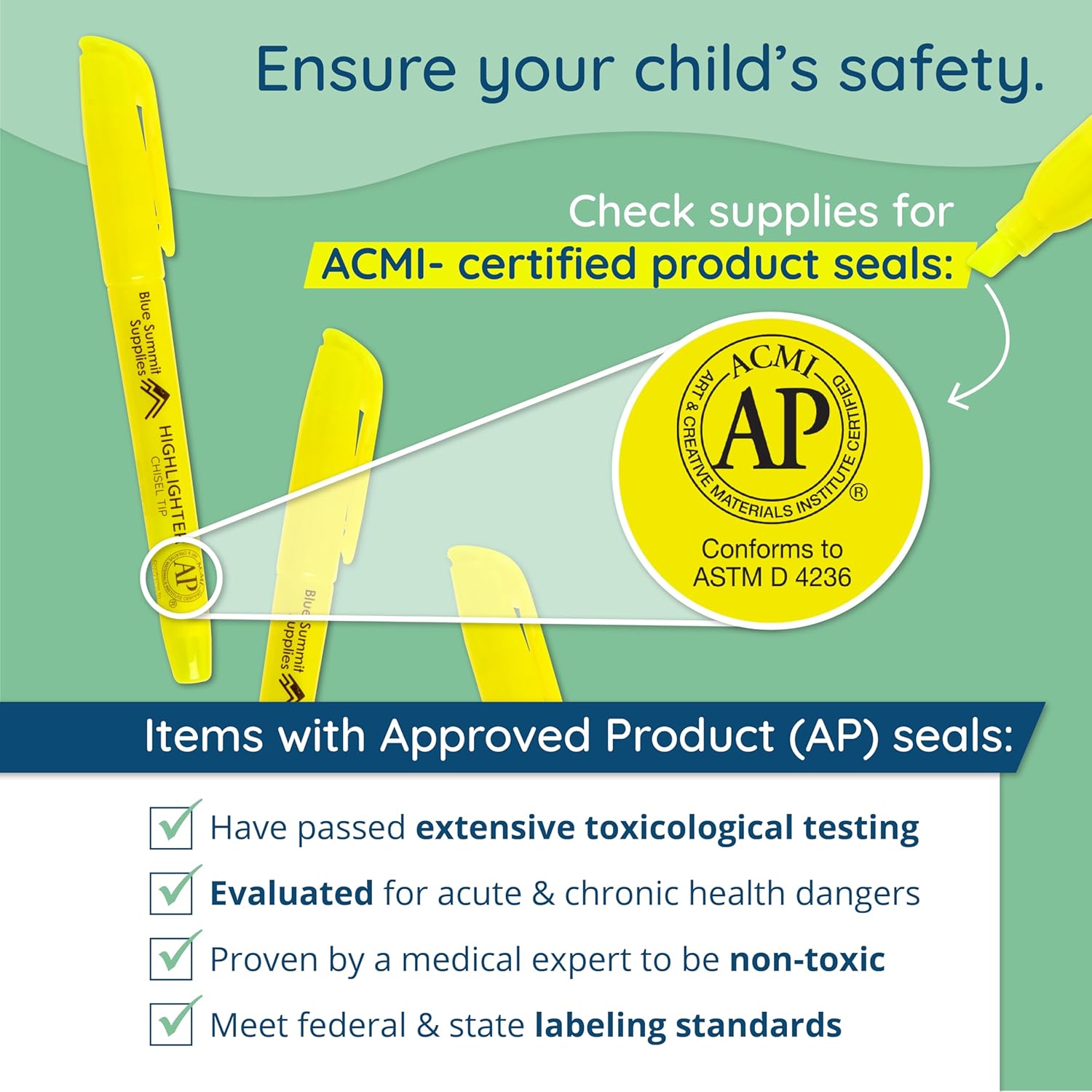- Safe for All Ages – Each yellow highlighter is an ACMI-Certified Approved Product (AP) and non-toxic, making it safe for use by children, students, teachers, or professionals in classrooms, homes, or offices.