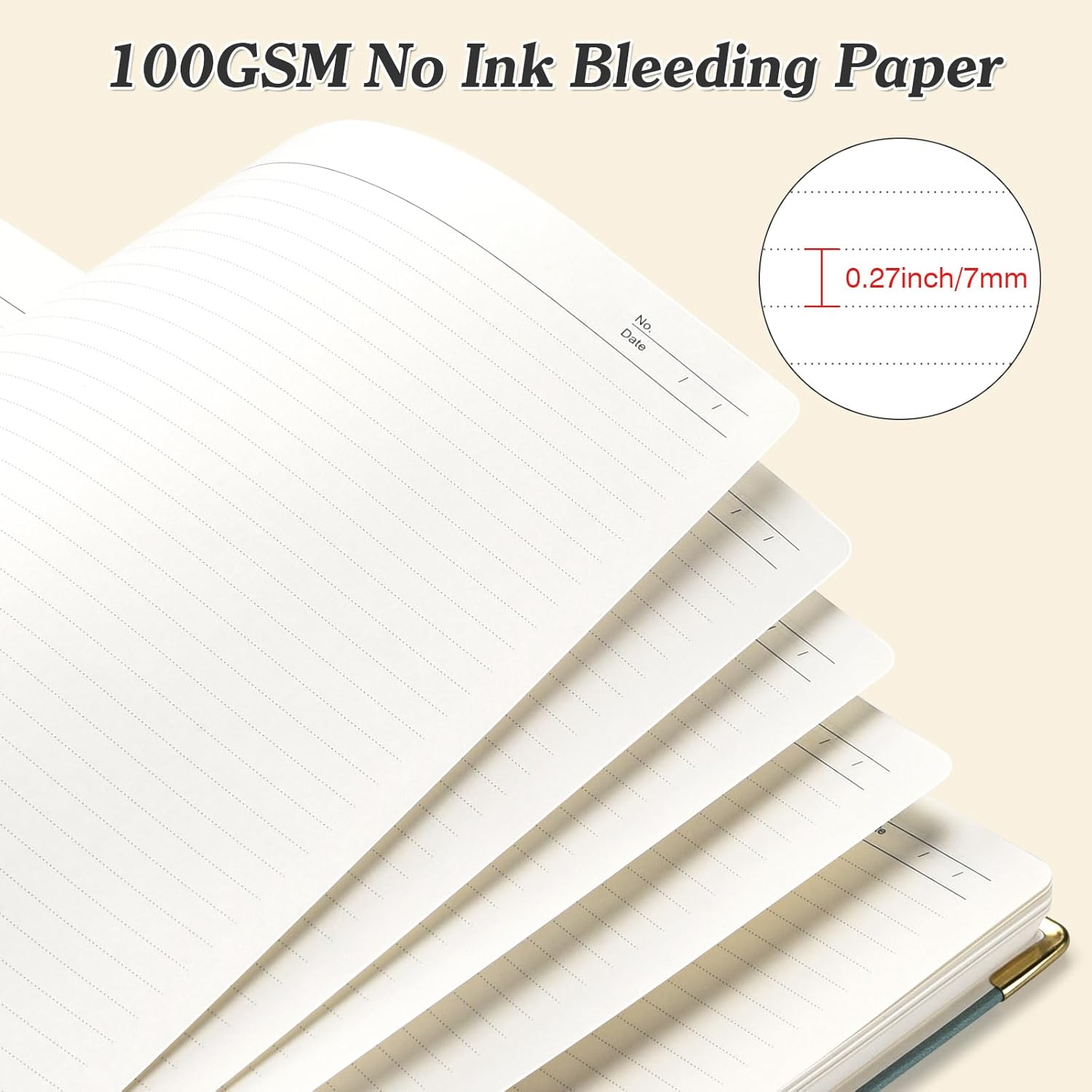 - 【100GSM No Ink Bleeding Paper & Large A4 Size】College ruled notebook features high-quality 100GSM creamy white paper, thicker than common market alternatives. This prevents ink bleed-through and ghosting, providing protection for your eyes. With spacious A4 dimensions (8.5" x 11") and a 7.1mm line spacing, you'll have ample room for notes, sketches, and plans without feeling cramped.