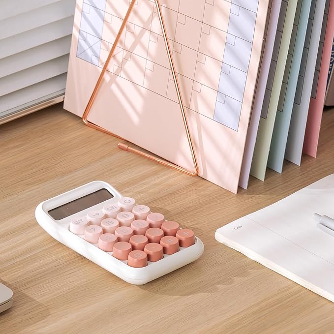 - Mechanical Switch - Carefully calibrated spacing and smooth surfaces ensure each key press provides a comfortable touch while preventing accidental inputs. The 15° tilted LCD screen of cute calculator offers optimal visibility for effortless reading
