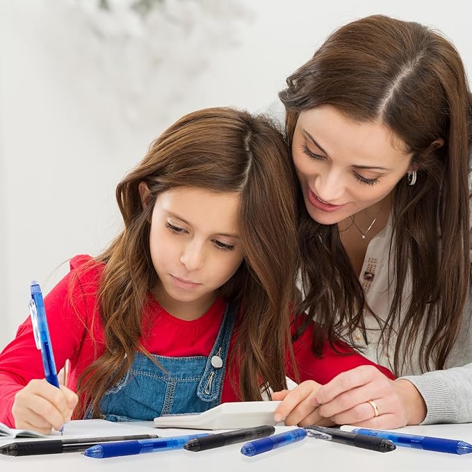 - Dual-Color Versatility: 10 black erasbale pens + 10 blue erasable pens, the smudge-resistant gel ink ensures crisp lines, while color-coding helps prioritize tasks in journals, calendars, or editable study guides