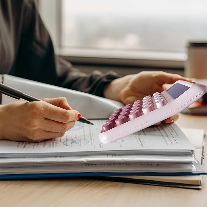 Desk Calculator, Cute 12 Digits Large LCD Display Merchanical Calculator Big Buttons for School,Office,Home,Business, Solar and Battery Dual Power, Battery Include (Pink)