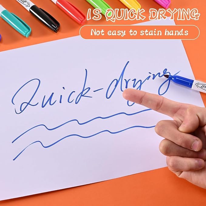 - QUICKLY DRYING PERMANENT MARKER: The colored permanent markers’ ink has professional formula, the color permanent markers can dry quickly in one second and they are long-lasting, very suitable for coloring、painting、writing、drawing、marking out.