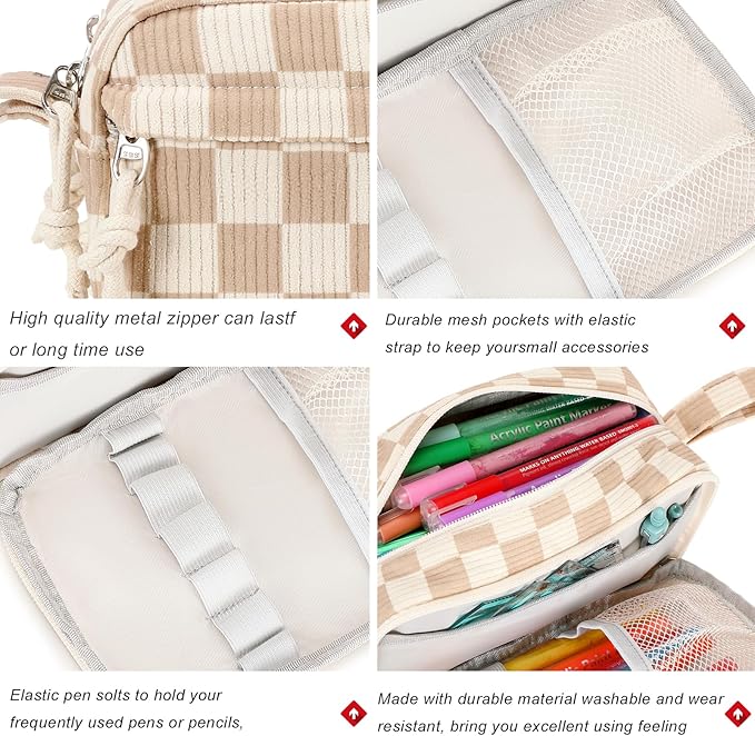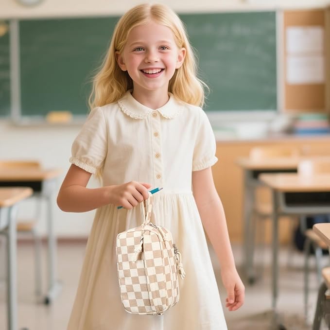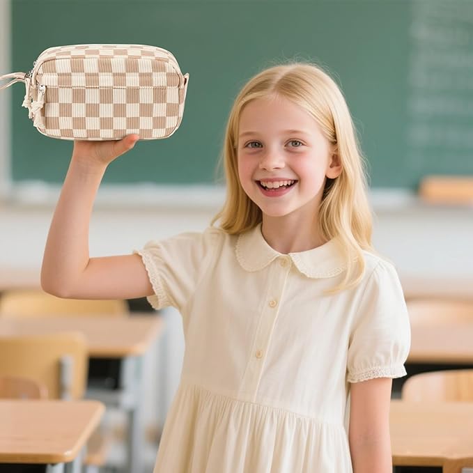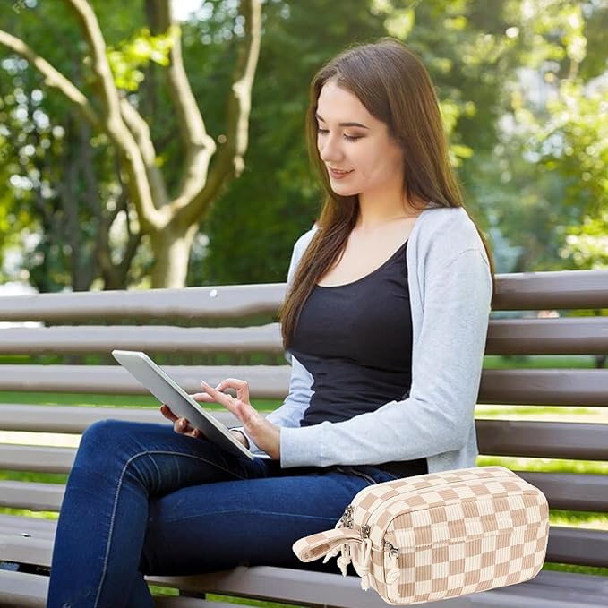 Bluboon Big Capacity Pencil Case Pencil Pouch Pen Case School Supplies Cute Pencil Box Pencil Bag for Teen Girls Boys Women Man (Brown White Checked)