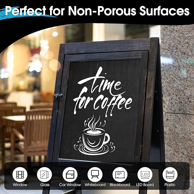 - Quality Ink: the white chalk markers are made of non-toxic, odorless ink, safe to use, and have smooth ink flow, can glide smoothly on most non-porous surfaces, are dust-free, quick-drying, and have strong covering power