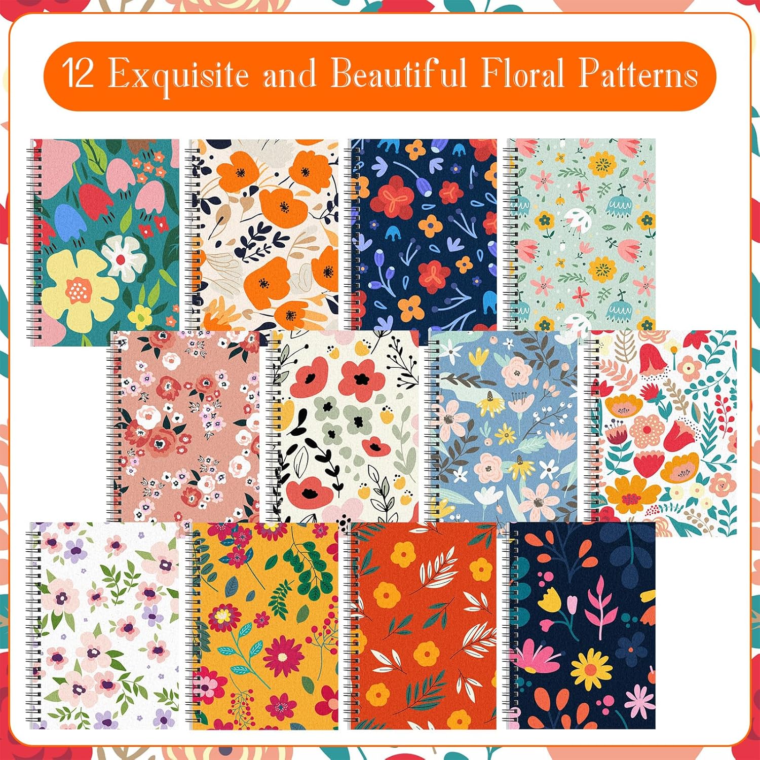 Fuutreo 12 Pcs Spiral Notebook for Work A5 8.3 x 5.7 Inch College Ruled Spiral Journal Notebook Kraft Cover Ruled Paper, 12 Color, 60 Sheets, 120 Pages for Office School(Floral Color)