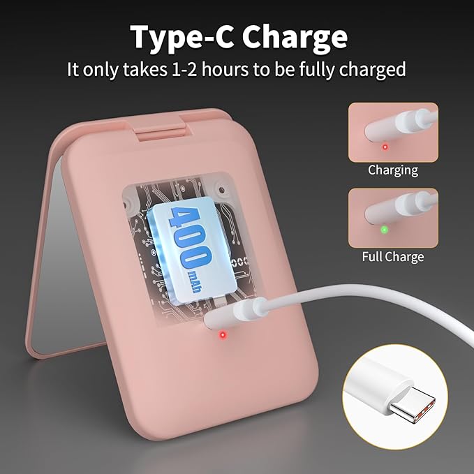 Kintion 2025 Pocket Mirror, Rechargeable Dimmable 3 Color Lighting 1X/3X LED Compact Travel Makeup Mirror for Purse, Portable, Folding, Handheld, Small Lighted Mirror for Women Gift, Pink