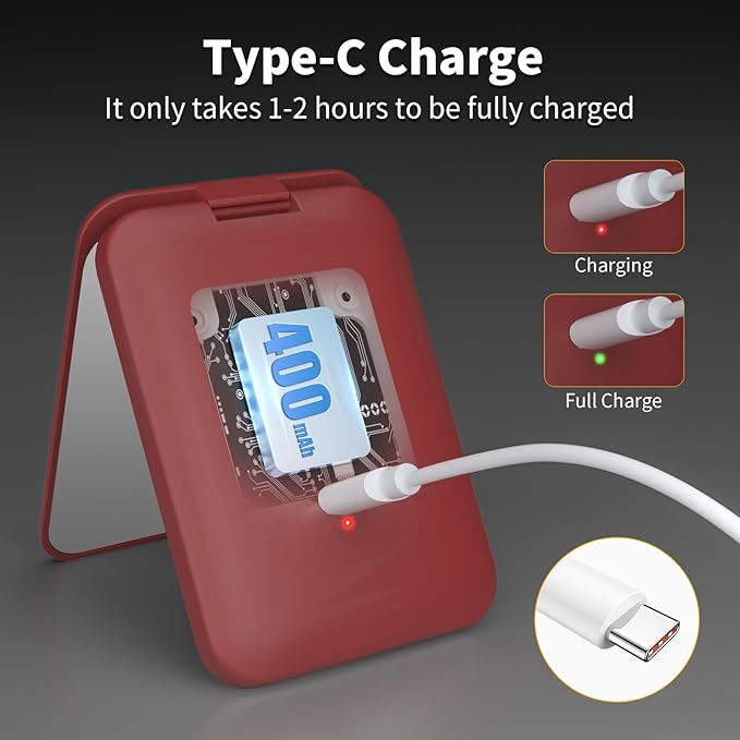 Kintion 2025 Pocket Mirror, Rechargeable Dimmable 3 Color Lighting 1X/3X LED Compact Travel Makeup Mirror for Purse, Portable, Folding, Handheld, Small Lighted Mirror for Women Gift, Wine Red
