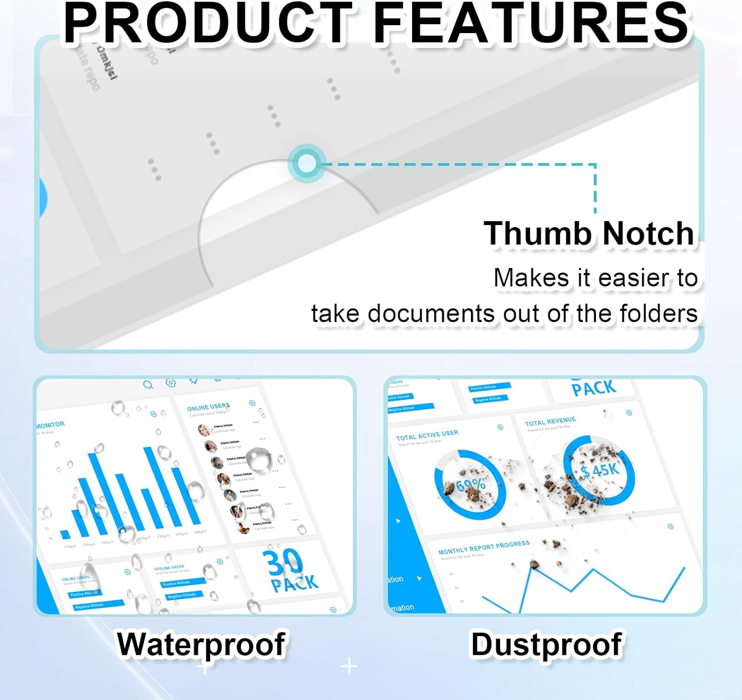 - Transparent Design: Clear plastic allows you to easily identify the contents inside without needing to open the folder.