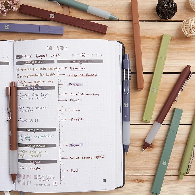 BLIEVE Aesthetic Highlighters and Gel Pens And Soft Tip, No Bleed Dry Fast Easy to Hold, for Bible Journaling Planner Notes School Office Supplies (Earthy)