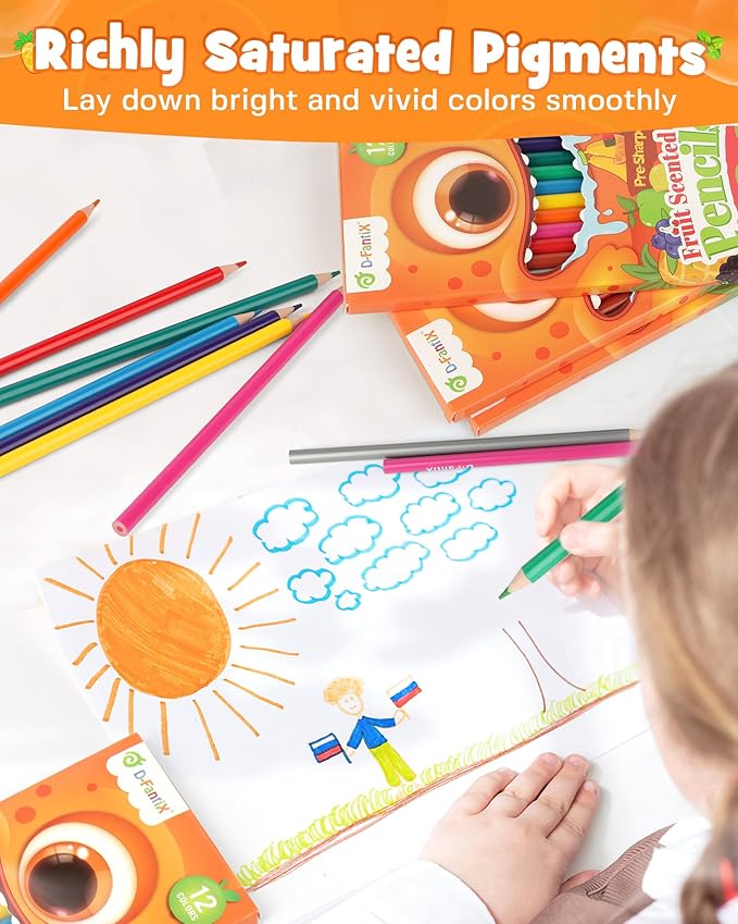 D-FantiX 24 Pack Fruit Scented Colored Pencils Bulk, 288 Count Pre-Sharpened Coloring Pencils Sets for Kids Students, Ideal Gifts for Classroom Prizes, Donations, Party Favors, Back to School Supplies
