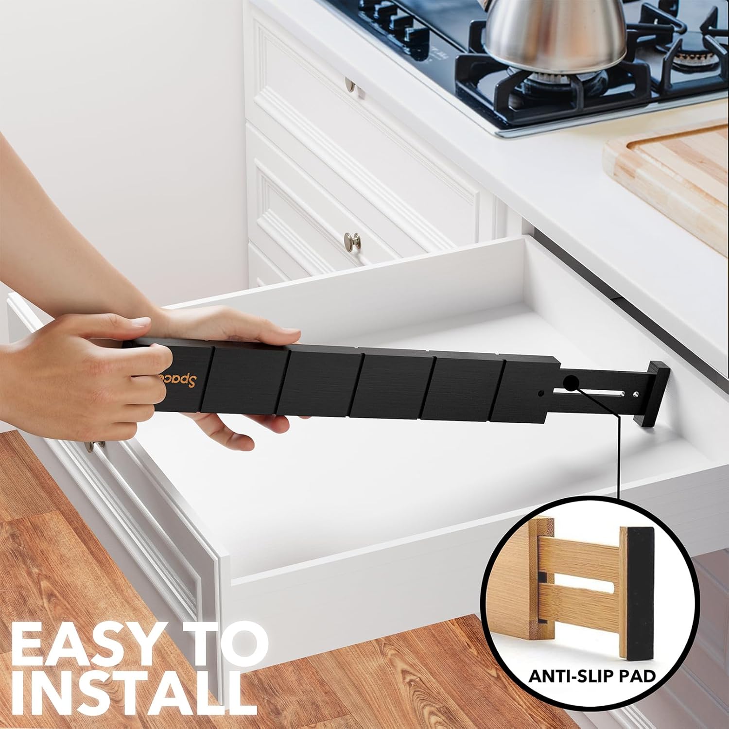 SpaceAid Bamboo Drawer Dividers with Inserts and Labels, Kitchen Adjustable Drawer Organizers, Expandable Organization for Home, Office, Dressers, 10 Dividers with 24 Inserts (17"-22" Black)