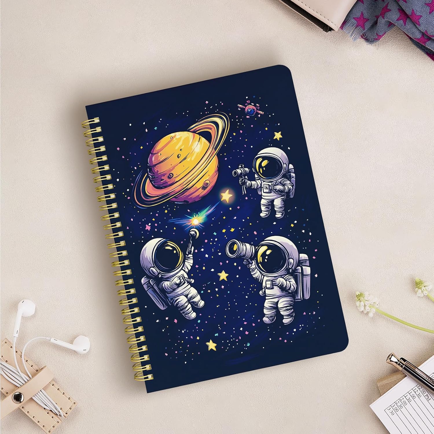 Cute Spiral Notebook journal B5 Aesthetic Pretty Design for Women Girls Kawaii with Pocket, 10 x 7.2 inch, Lined, Astronaut