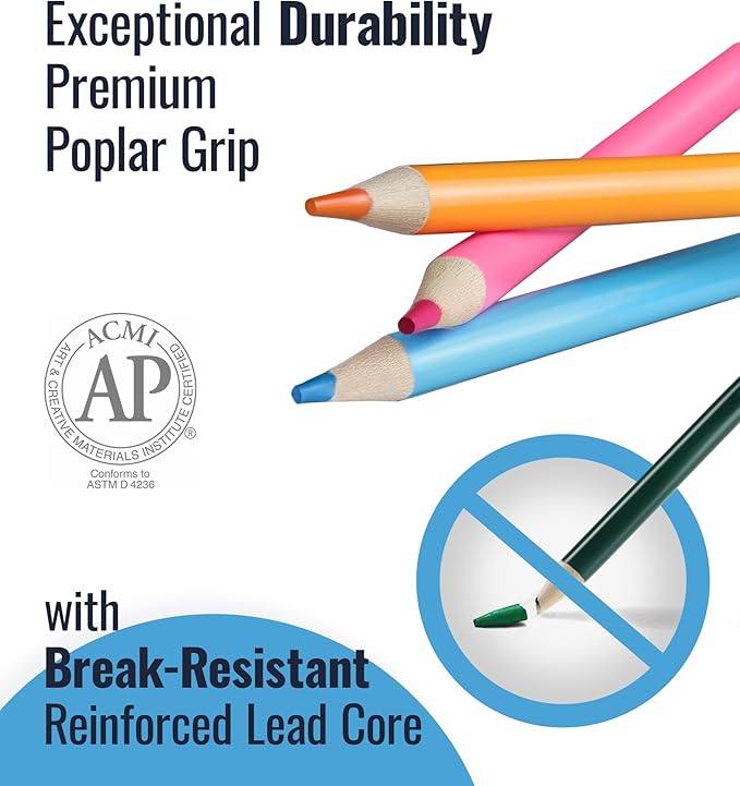 - SMOOTH & BREAK-RESISTANT CORE: Featuring a soft yet durable core, these colored pencils glide effortlessly across the page, ensuring a silky-smooth coloring experience. The premium core is designed to be break-resistant, allowing for easy sharpening without cracking. These coloring pencils provide seamless color transitions and vibrant results