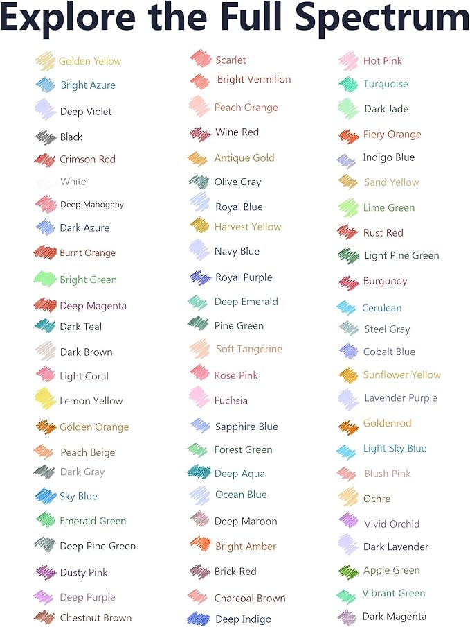 - VIBRANT 72-COLORED PENCILS SET: Unleash your creativity with our premium color pencil set of 72 richly pigmented colored pencils, carefully curated to provide an extensive range of shades for every artistic need. Whether you're blending, shading, or adding intricate details, these fade-resistant hues ensure smooth and consistent color application