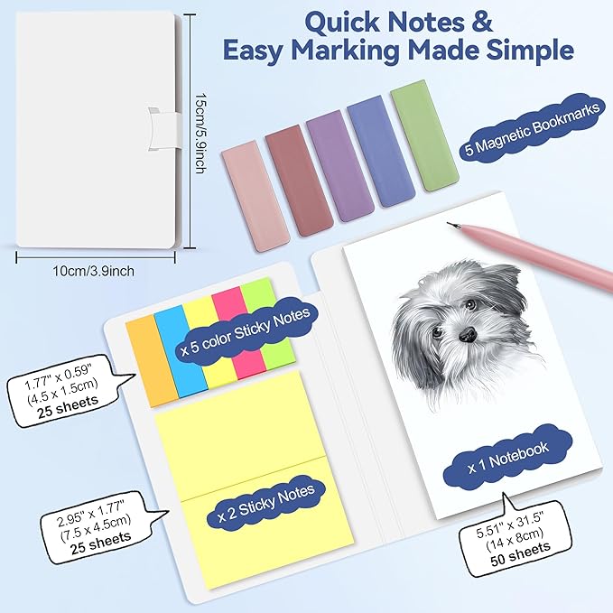 - Thoughtful Gift for Students & Creatives: A perfect back-to-school or special occasion gift, this set combines functionality with aesthetic appeal. Including sticky notes, magnetic bookmarks, and an eye-catching pastel palette, it’s designed to inspire and support academic success