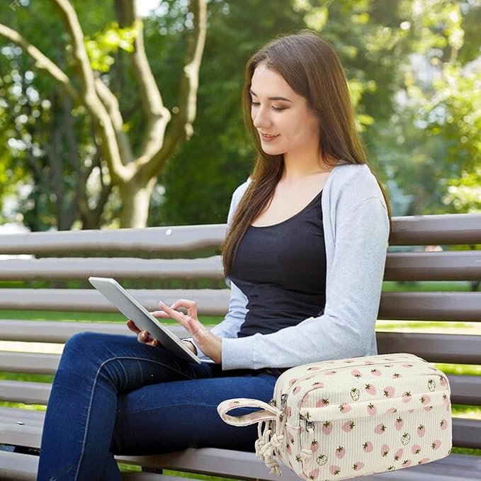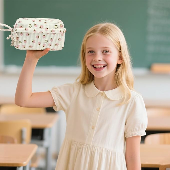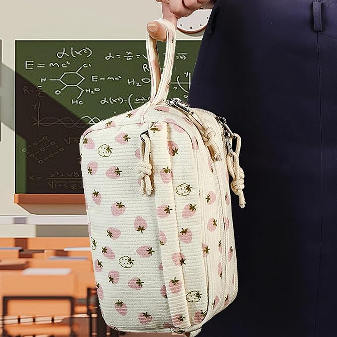 Bluboon Big Capacity Pencil Case Pencil Pouch Pen Case School Supplies Cute Pencil Box Pencil Bag for Teen Girls Boys Women Man (Strawberry Pink white)
