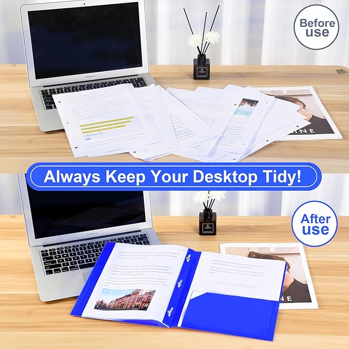 - 【3-prong with Fasteners】:The three prongs with fasteners allow for easy fastening of 3-hole punched letter size folders, perfect to secure and store documents with ease.